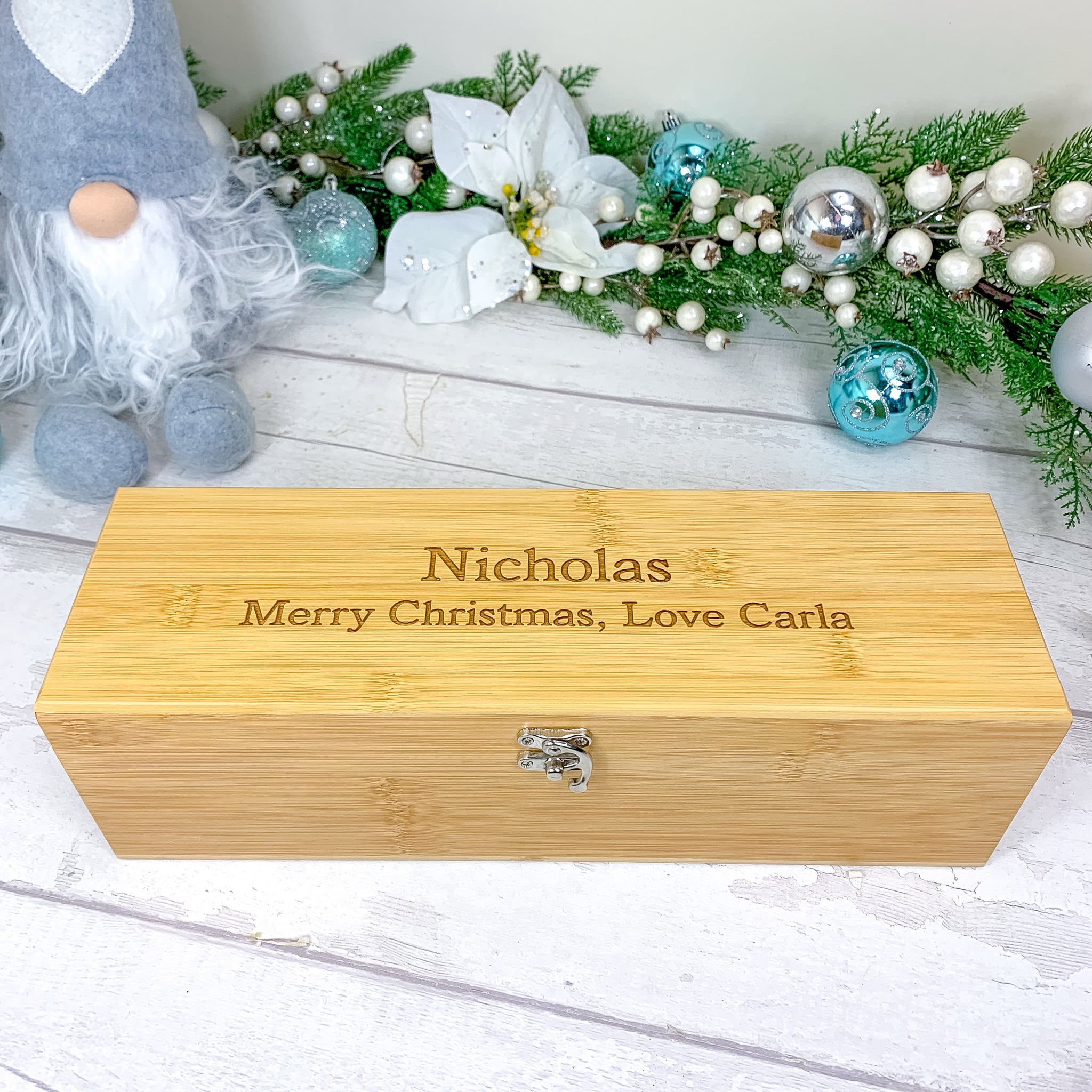 This beautiful high quality personalised wine gift box is ideal as a Christmas Gift and makes the perfect gift for him, her or a couple who really enjoy wine. Whether it be celebrating Christmas or New Year, this is the perfect personalised wine gift.